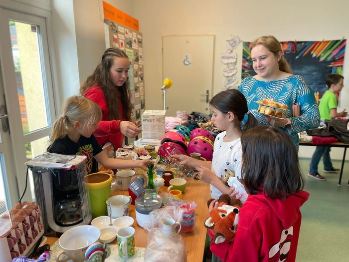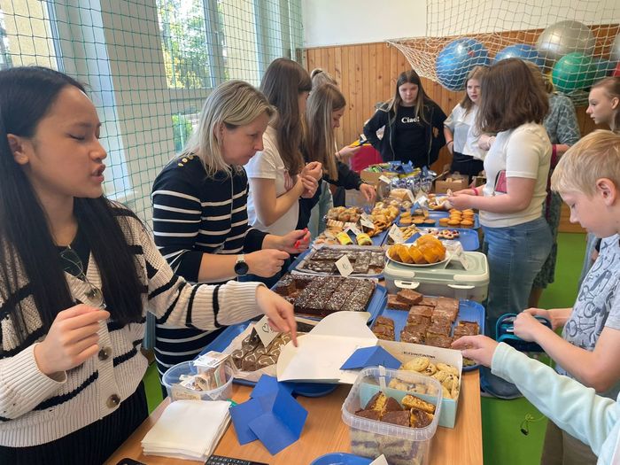 Chceme poděkovat všem, kteří přinesli věci k prodeji, napekli sladké nebo slané dobroty, vyrobili popcorn, pomohli s přípravou stolů a úklidem. Prodávaly se také sazenice, které vypěstovali žáci 3. B třídy. Zvláštní poděkování patří děvčatům z 9. A, které pod zkušeným vedením paní asistentky Štěpánky Kubové zajistily prodej dobrot, a žákům 6. B, kteří pomáhali třeťákům s prodejem.