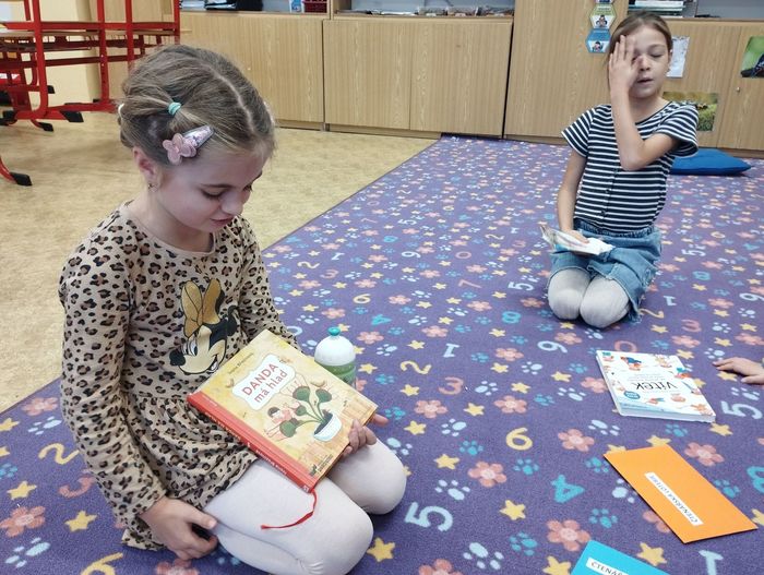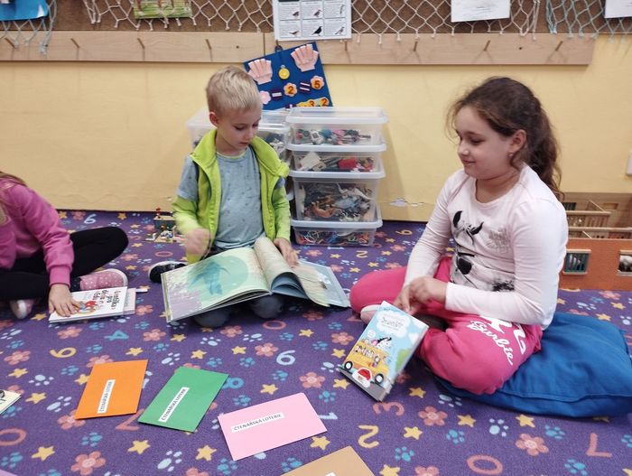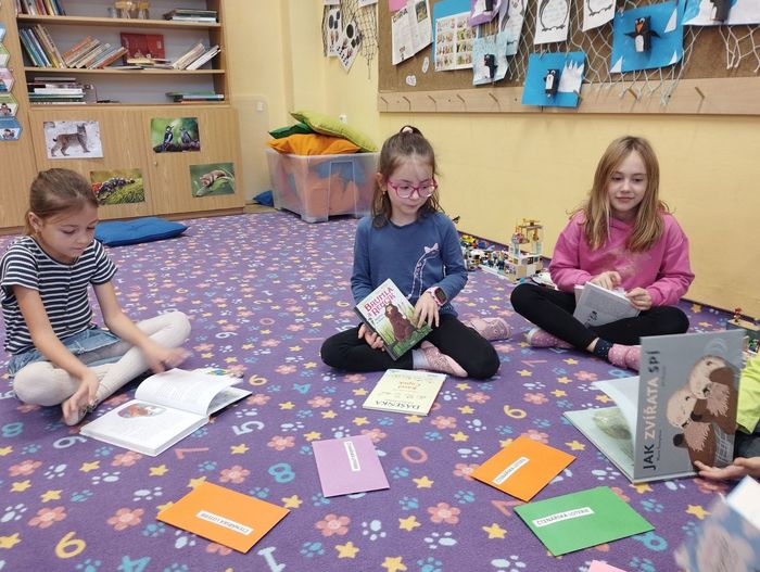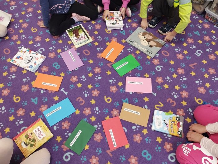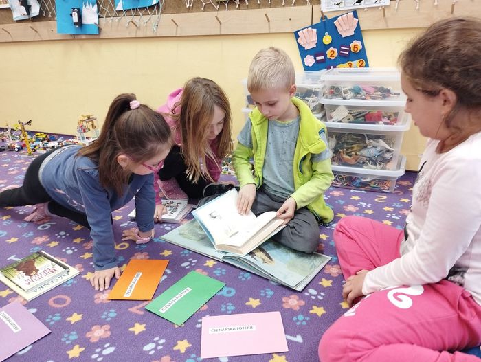 Každou středu se setkává skupinka dětí ve čtenářském kroužku. Jak už název napovídá, v kroužku čteme knihy. Zároveň si ale o nich i povídáme, ukazujeme si je, doporučujeme a inspirujeme se. Ne vždy se začteme do své vlastní knihy, ale rádi vybíráme knihy z čtenářské knihovničky. Poslední kroužek byl ale o štěstí. Knihu, kterou budeme číst, nám určila barevná obálka čtenářské loterie. Bylo to pro všechny malé překvapení. Někteří měli štěstí a kniha je velmi zaujala. Někteří naopak smůlu a po prvních řádcích věděli, že kniha není jejich šálkem kávy. I takové čtenářské zkušenosti jsou pro děti přínosné.