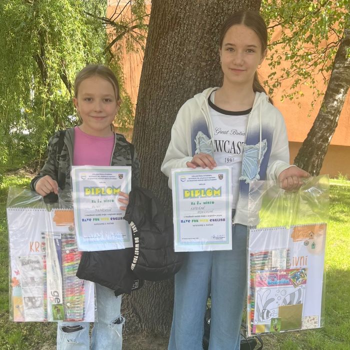 Dne 30. dubna se vybraní žáci naší školy zúčastnili jazykové soutěže "Have fun with English" ve Studénce. V silné konkurenci škol z okolí nás v kategorii 5. tříd úspěšně reprezentovaly Alice Papřoková a Kateřina Honzková, které získaly 1. místo!