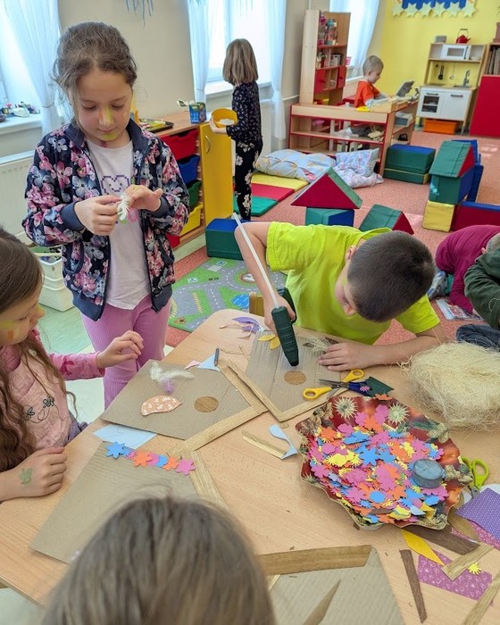 Pomáháme ptáčkům při hnízdění. Vyrobili jsme jim v družince krásné ptačí budky.