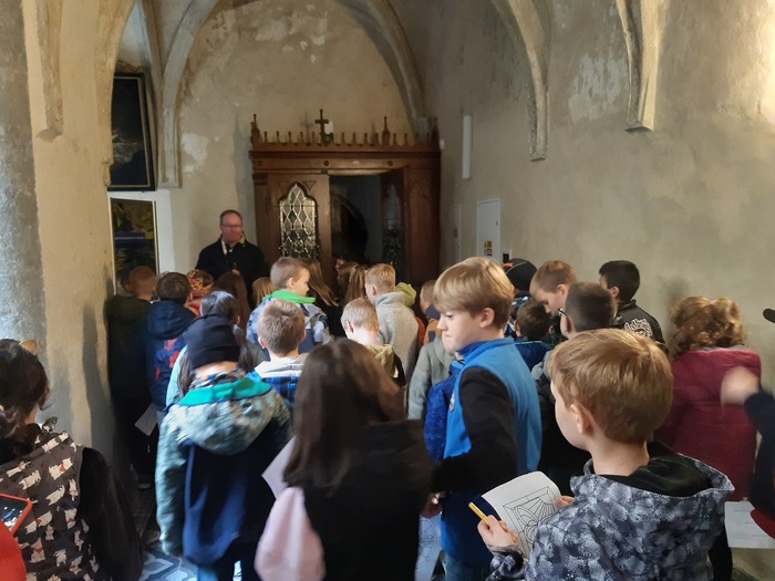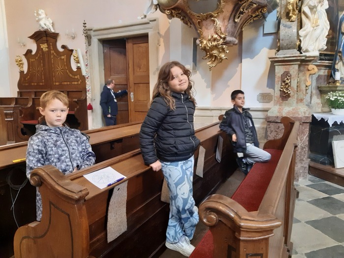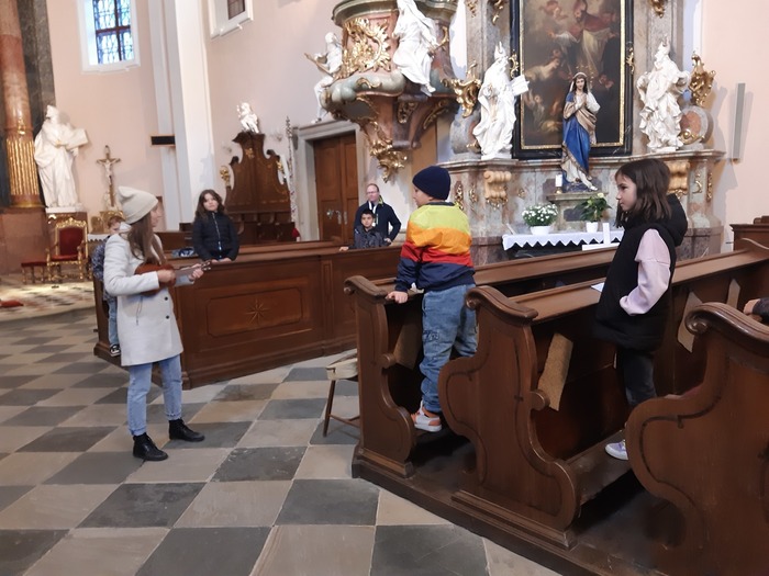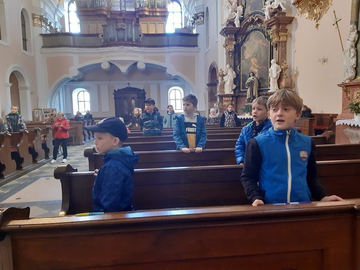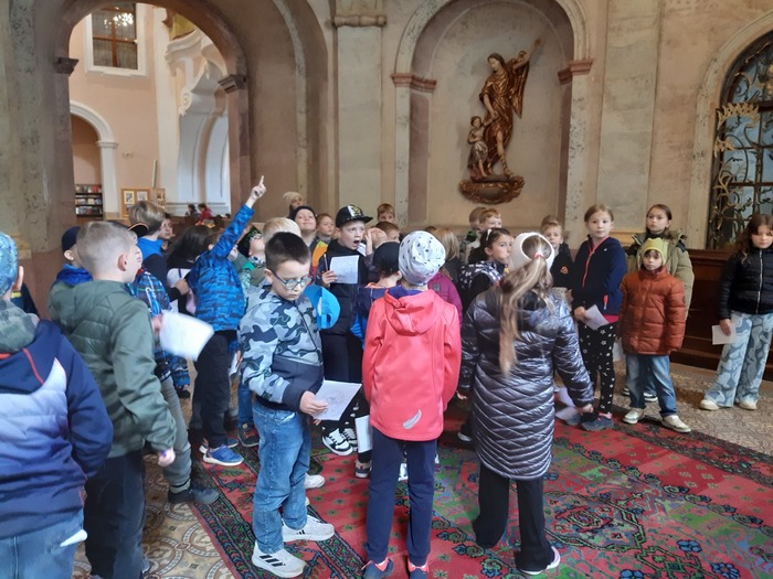 V úterý 15. října se třeťáci seznámili s nejvýznamnější památkou Fulneku. Začali ve třídě skládáním puzzle, kdy podle obrázků hádali, o čem celý projekt bude. Památku si ukázali na mapě, hledali a pojmenovávali sousední budovy, ve volném psaní přemýšleli o tom, co se jim vybaví, když se řekne kostel. Další část projektu se odehrávala přímo v chrámu, kam vstupovali po jednom, našli si místečko na sezení a plnili úkoly. Došlo i na společný zpěv, při kterém si vyzkoušeli výbornou akustiku, a relaxaci na lavičkách, kdy obdivovali výmalbu stropu a poslouchali ticho. O prohlídku a zajímavosti o sochách a obrazech se postaral p. Dubec. Děkujeme. V poslední části si každý z dětí vybarvil svoji mandalu, která tak trochu symbolizovala vitrážové okno, umístěné v křížové chodbě kostela.