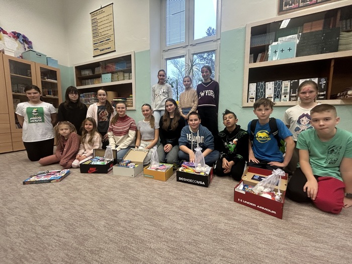 V rámci parlamentu jsme si vybrali holčičku a kluka ve věku 9-10 let a začali jsme do krabice ve škole nosit dárky, které jim na Štědrý den udělají radost. Naše radost byla ovšem ještě větší, když jsme nakonec krásnými dárky naplnili dokonce šest krabic od bot! Krabice jsou odevzdány a teď putují za těmi, koho o Vánocích potěší. A my moc děkujeme všem laskavým a dobrým lidem na naší škole a také rodičům, kteří nás v této akci podpořili!