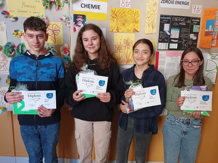 Do soutěže Matematický klokan se 22. března zapojilo celkem 128 žáků naší školy. Nejlepšími Klokany se stali: Antonín Holík v kategorii Cvrček, Miriam Kyselá v kategorii Klokánek, Františka Hrabálková v kategorii Benjamín a Tomáš Bill v kategorii Kadet. Blahopřejeme!