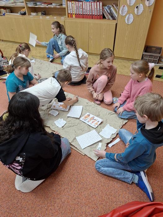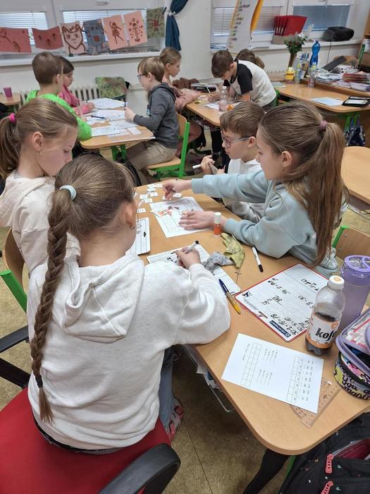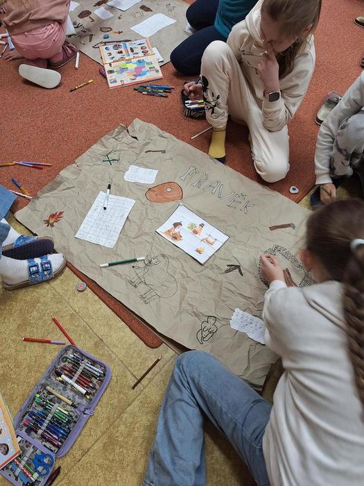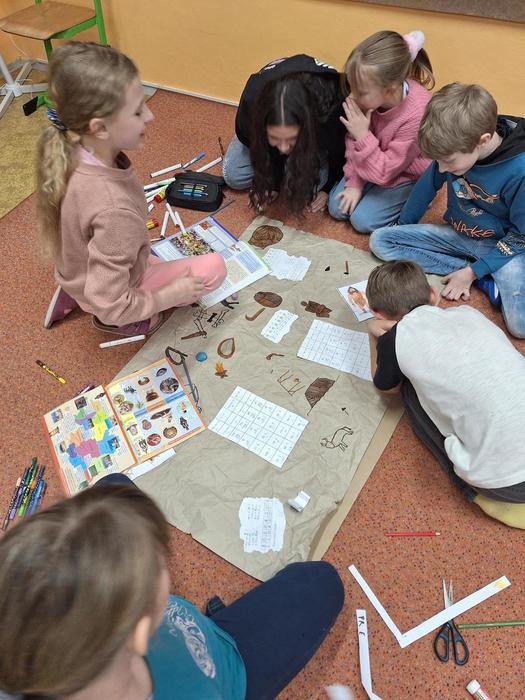 Úvod > O nás > Aktuality > Pravěk v matematice a výtvarné výchově - 4.A