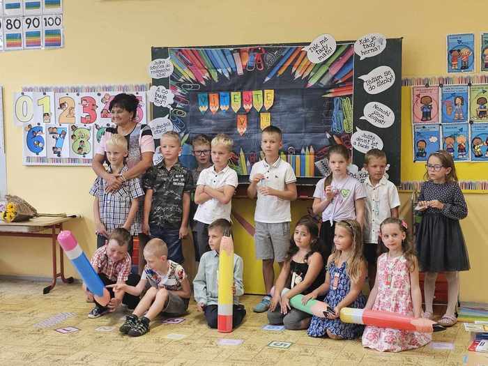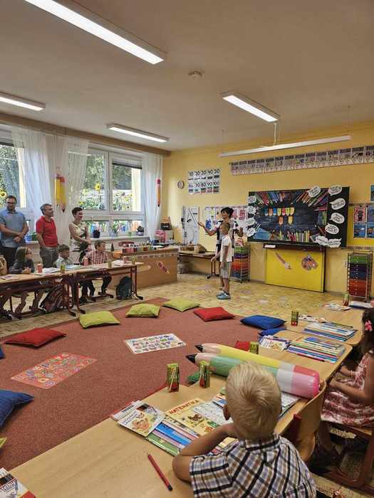 Naši prvňáčci z 1.B nastoupili do školy s radostí a s očekáváním nových zážitků. Nejvíc se těšili na nové kamarády a paní učitelku. Čekala je krásně vyzdobená pastelková třída a paní učitelka Dagmar Šaflová, která se na své prvňáčky už moc těšila. Tak ať se jim daří a v 1. třídě moc líbí!