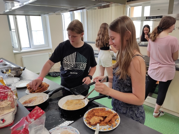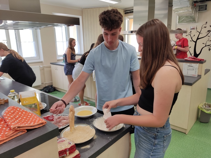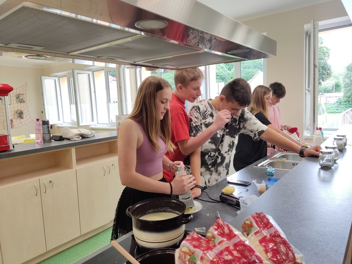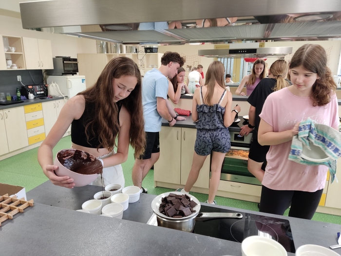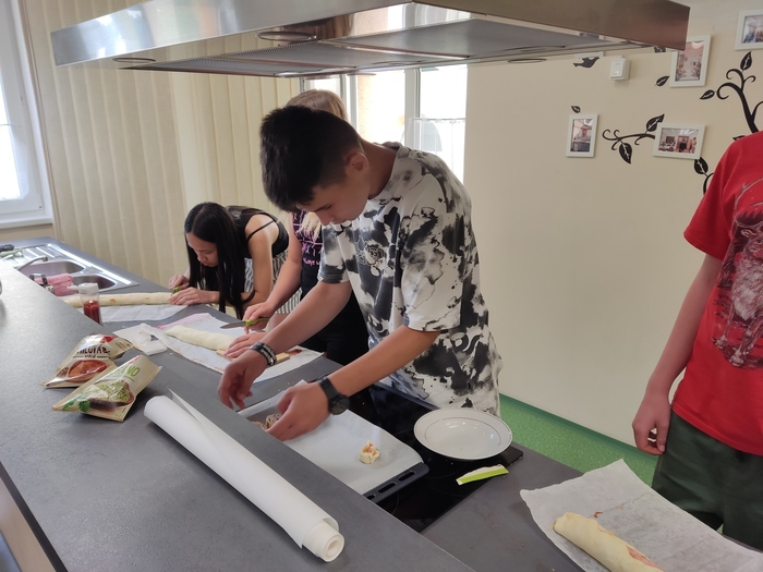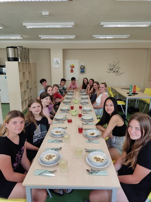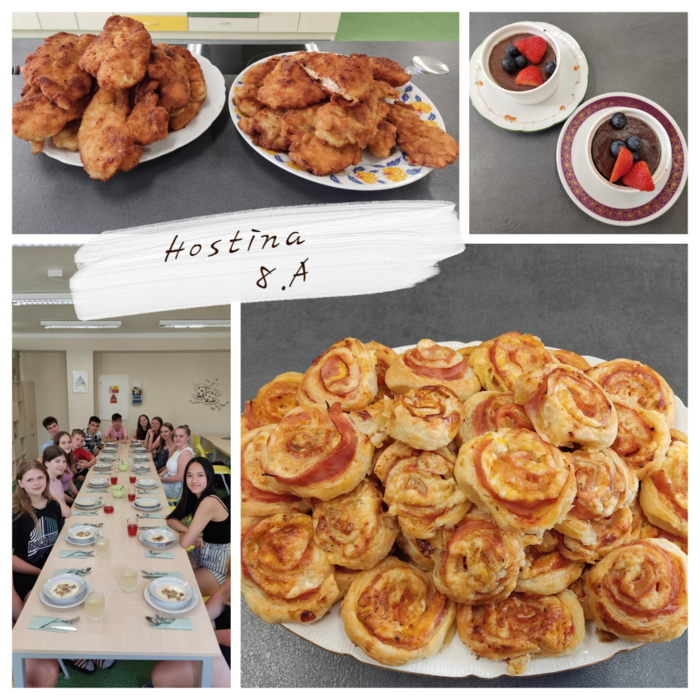 V pondělí 24. června si třída 8. A užila nezapomenutelný den! Ráno si osmáci společně zašli na nákup, aby si poté připravili slavnostní čtyřchodové menu. Na slavnostním stole nechyběla česneková polévka, křupavé řízky, delikátní šneci a sladké suflé. Každý přiložil ruku k dílu a výsledkem byla hostina, kterou si všichni užili. Byl to skvělý způsob, jak se rozloučit s uplynulým školním rokem a začít prázdniny ve velkém stylu!