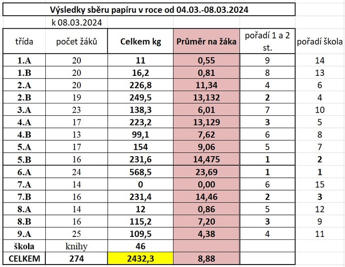 Úvod > O nás > Aktuality > Sběr papíru březen 2024 - výsledky