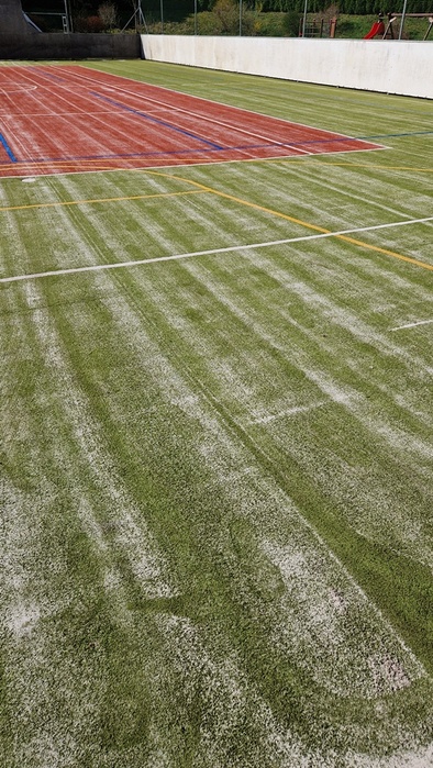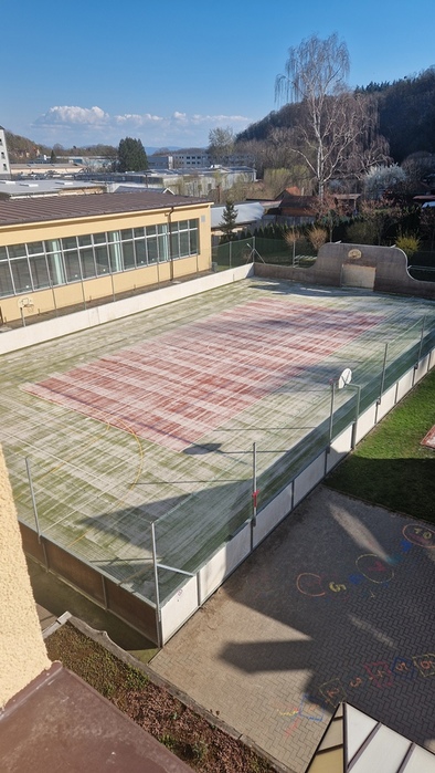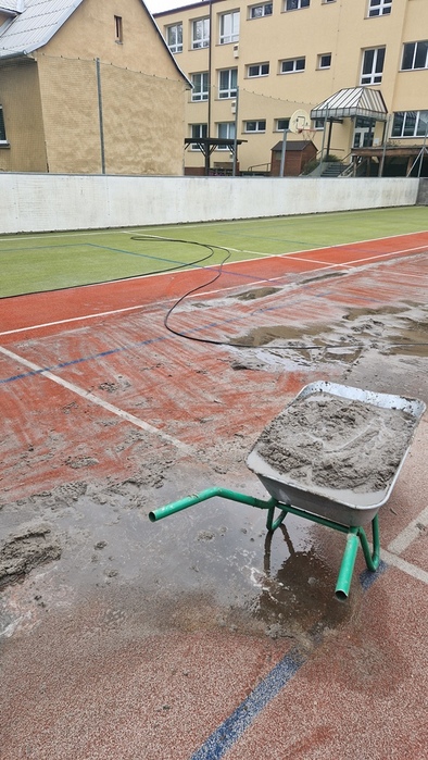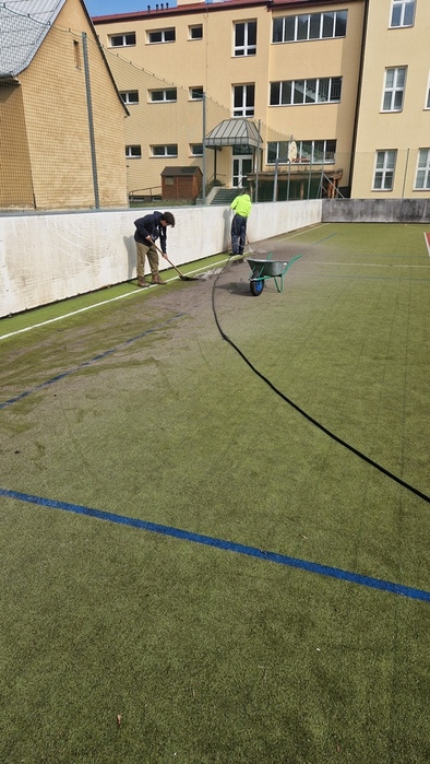 Od září roku 2008 mají naši žáci možnost využívat školní hřiště. Ke 130 letům vzniku školy si proto zasloužilo revitalizaci. Byl odstraněn starý křemičitý písek a mech. Hřiště je zase jako nové.