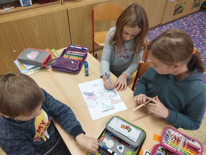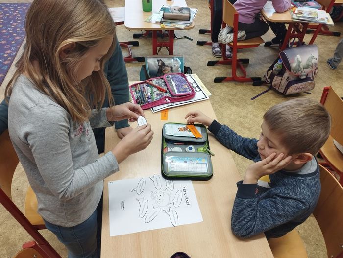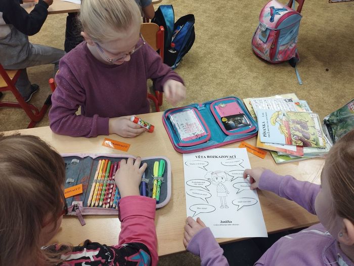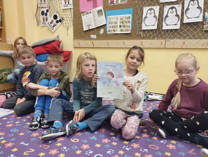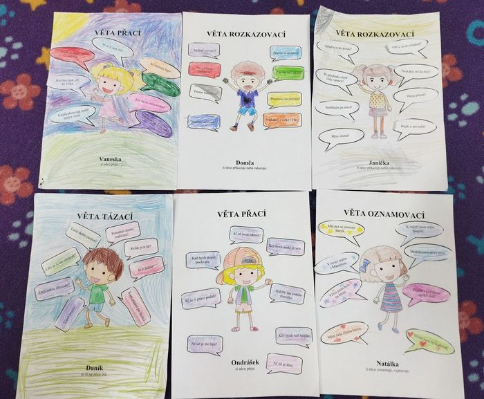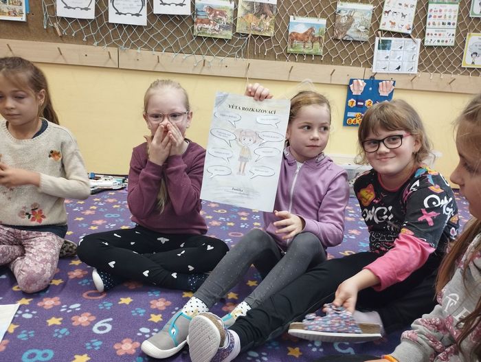 Děti z 2.B se v minulých dnech učily druhy vět formou skupinové práce. Práce ve skupinách učí děti odpovědnosti, organizaci práce, podporuje jejich aktivitu a iniciativnost. Samozřejmě je takové učení zábavnější a úkol se pak stává snáze zvládnutelným.
