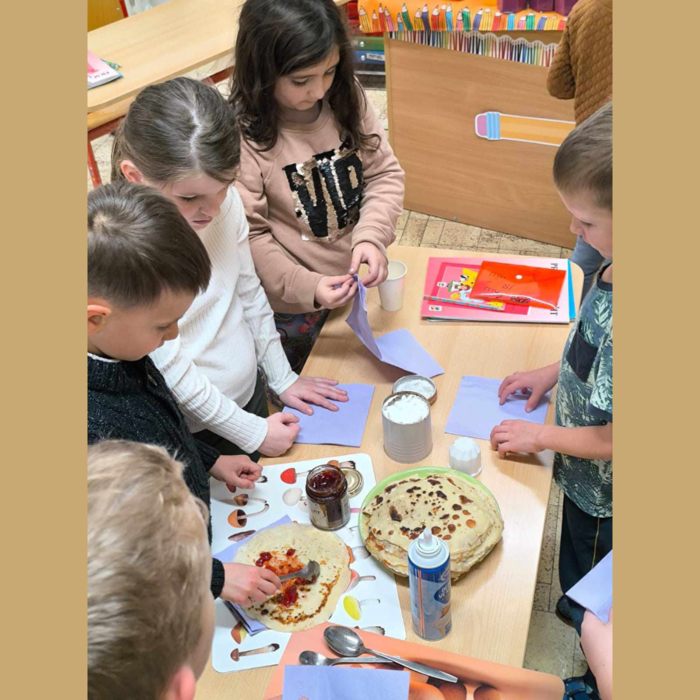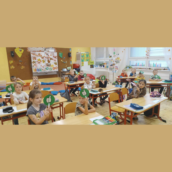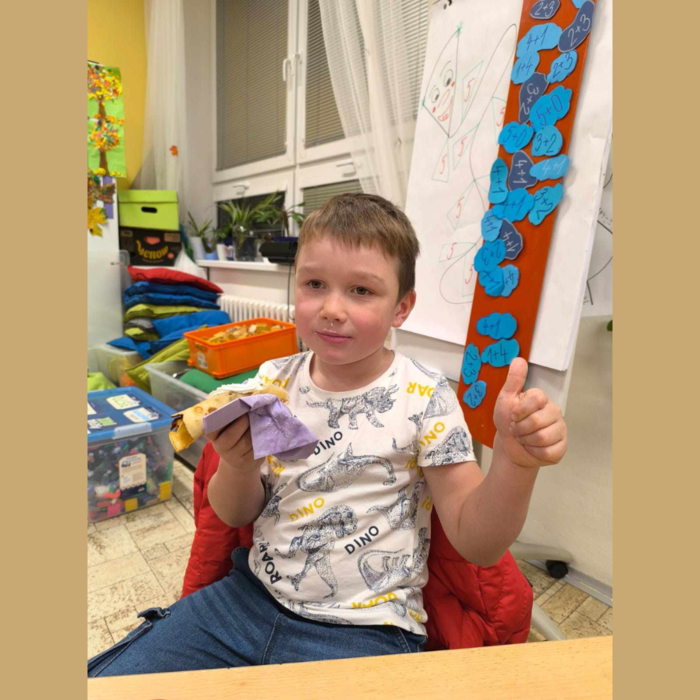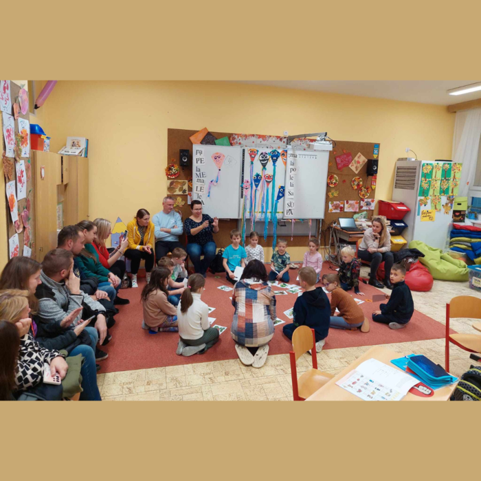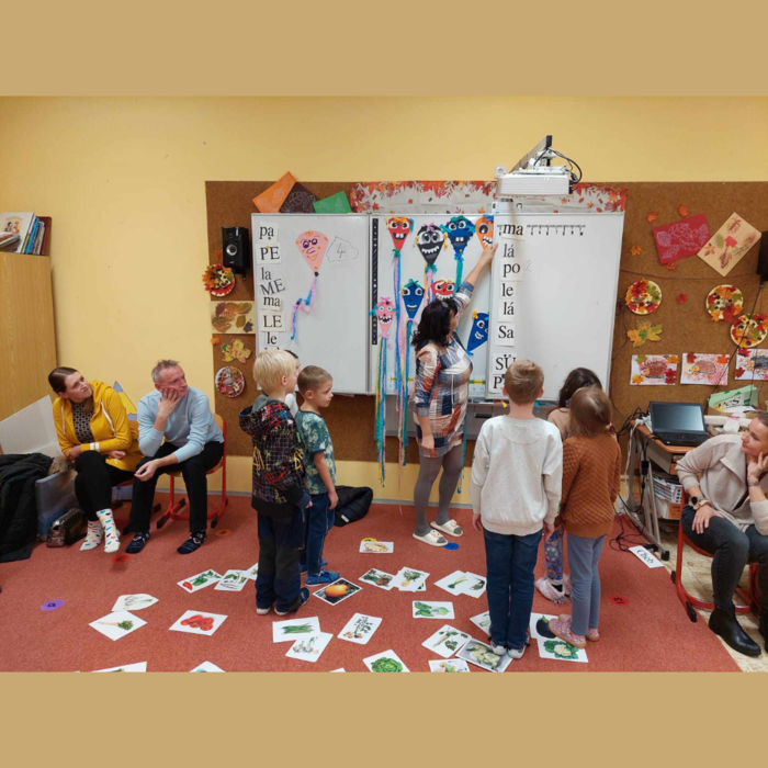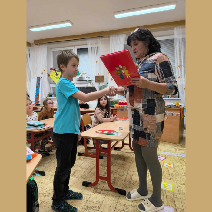 Slavnost slabikáře v 1.B. Na poslední listopadový měsíc si pozvali prvňáčci do školy své rodiče i prarodiče, aby jim ukázali, co všechno se už naučili. Přišli úplně všichni a rodičů bylo víc než dětí. Společně jim zazpívali, přečetli první slova, pracovali ve skupinách a plnili matematické úlohy. Rodiče se mohli podívat, jak to jejich dětem ve škole jde a to je ta nejlepší třídní schůzka. Nakonec jim paní učitelka předala slavnostně zabalený slabikář. A zaslouženou odměnou byly sladké palačinky pro všechny.