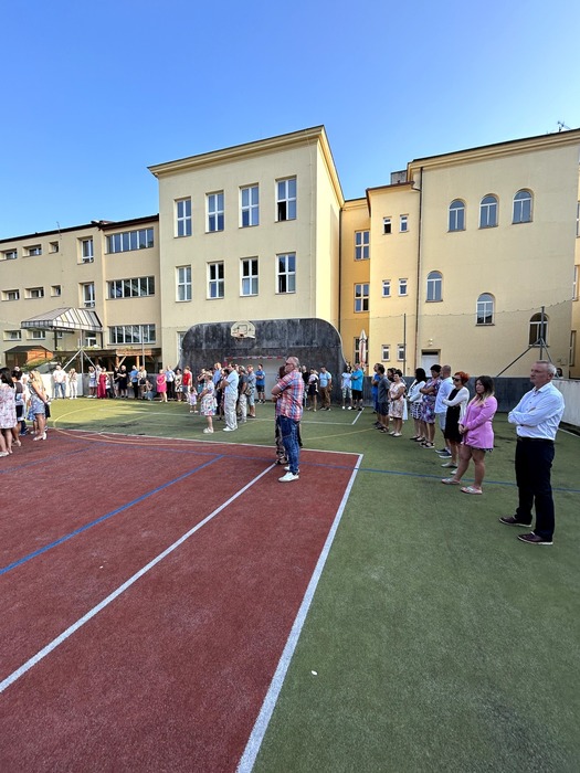 Dnes jsme slavnostně na hřišti zahájili nový školní rok! Paní ředitelka nás srdečně přivítala a popřála úspěchy nejen malým prvňáčkům, ale i všem žákům a zaměstnancům. Tento rok je pro nás opravdu výjimečný – slavíme 130 let naší školy! Už nyní se společně můžeme těšit na spoustu skvělých akcí, které nás budou celým školním rokem provázet.