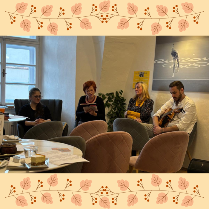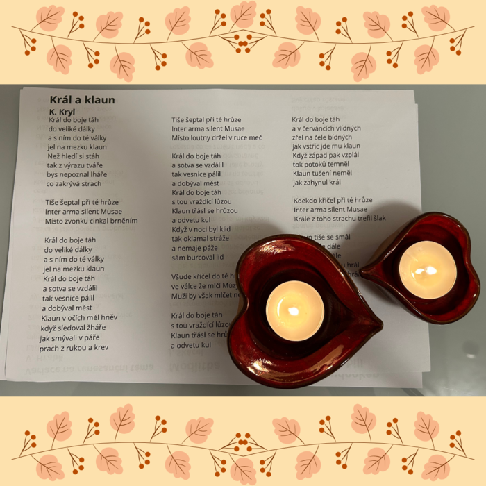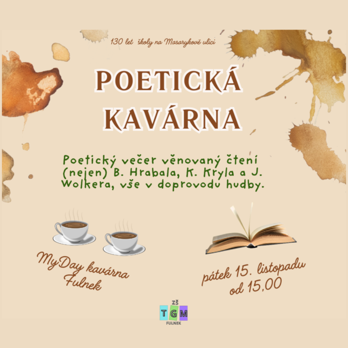 V polovině měsíce listopadu se uskutečnil již třetí ročník krásné komorní akce Poetická kavárna. Tímto způsobem se naše Základní škola T. G. Masaryka ve Fulneku připojila k celostátnímu festivalu Den poezie. Poetickou kavárnou se zároveň připojujeme k oslavám 130 let vzniku školy na Masarykově ulici. Naše škola už mnoho let v rámci Dne poezie organizuje týdenní projekt Barevný podzim s poezií a právě tato Poetická kavárna je jeho zakončením a vyvrcholením. Předchozí dva ročníky byly věnovány zakázaným básníkům a milostné poezii. Letošním tématem se stala poezie v hudbě. Paní učitelky si pro hosty připravily úryvky z děl velikánů české poezie i prózy. Zazněly verše Václava Hraběte, Davida Stypky, Ivana Martina Jirouse, Jana Skácela, Josefa Kainara a Karla Kryla. Právě Krylovy písně se rozezněly i z gramofonu a hosté si mohli prohlédnout přebaly gramofonových desek a vyplnit krátký kvíz. Zazněl rovněž prozaický text Něžný barbar od Bohumila Hrabala a všichni hosté napjatě čekali na další úderné komentáře jedné z postav knihy Egona Bondyho. Celé poetické odpoledne proběhlo za zvuku tónů kytary. Pomyslným vrcholem bylo zapálení svíčky jako připomínky 35. výročí od sametové revoluce. Děkujeme všem, kteří s námi prožili příjemné odpoledne a za organizaci akce si rovněž zaslouží velký dík paní učitelka Eva Kapolková. Děkujeme a už nyní se těšíme na další ročník!